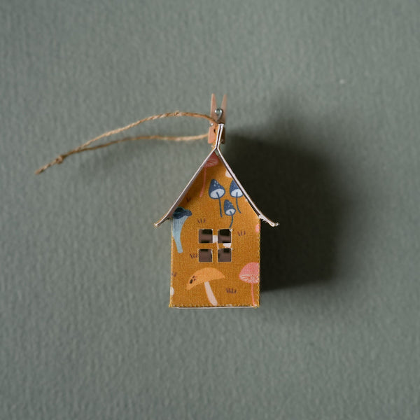 A cozy fabric home to brighten your nights. Can be hung or displayed.